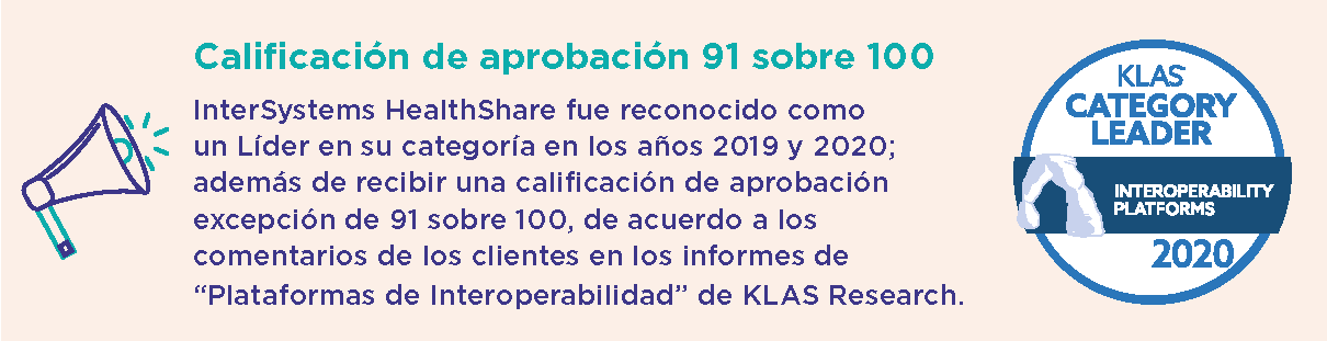 InterSystems fue reconocido por Gartner Peer Insights Customer’s Choice para Sistemas Operativos de Gestión de Bases de Datos (por su sigla en inglés, OPDBMS) en 2019 y 2020. Esta es la misma tecnología que hay en el corazón de HealthShare. InterSystems alcanzó un impresionante 4,75 de un total de 5 en Gartner Peer Insights. Algunas de las opiniones anónimas de los encuestados en Peer Insights decían “InterSystems es el mejor proveedor con el que he trabajado en mis 25 años de trayectoria. Su estructura de soporte es excelente y tiene una gran disponibilidad,