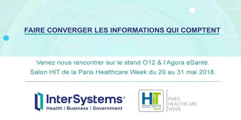 L’équipe InterSystems sera heureuse de vous accueillir à l’occasion du salon HIT de la Paris Healthcare Week du 29 au 31 mai 2018.