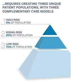 プライムヘルスケアサービス(AOC: accountable care organization)のエンタープライズITオペレーションおよびインフラストラクチャ担当シニアディレクターであるエリック・ミルハム氏によると、リスクピラミッドの階層に関係なく、来院と来院の間に患者と接触することによって、医療費が削減できると言います。「健康増進のために患者に医師を訪ねさせることが可能になれば、救急搬送が必要な命にかかわる、あるいは急性期のケアから、一歩前進したことになります。長期的にみると、これは有効なのです。」