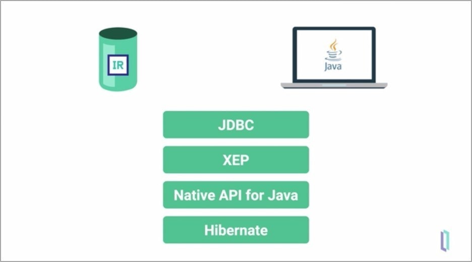 インターシステムズのJDBCドライバは、3つの軽量な Java API をサポートし、リレーショナルテーブル、オブジェクト、多次元ストレージ経由での InterSystems IRIS データベースへのダイレクトアクセスを提供します。