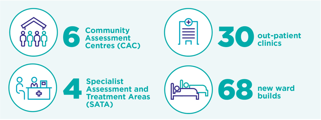 The need to respond quickly was critical, there was an immediate need to implement digital support across a number of areas. Using existing TrakCare functionality we set up six Community Assessment Centres (CAC) and four Specialist Assessment and Treatment Areas (SATA) with patients with COVID-19 symptoms initially triaged by phone. We created, within a very short space of time, 30 out-patient clinics to support the CACs, 68 new ward builds, and amended intensive-care unit (ICU) beds floor plans to accommodation the increase in beds.